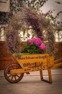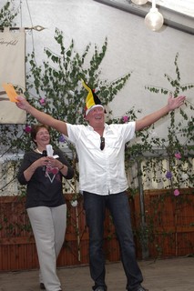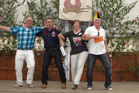 Dann wurde es spannend - die Versteigerung der Heidekarre, dem Symbol der Nachbarschaft, stand an. Schnell waren fünf Helferinnen bzw. Helfer gefunden, die Christian Pollmeyer bei der amerikanischen Versteigerung zur Seite standen.
