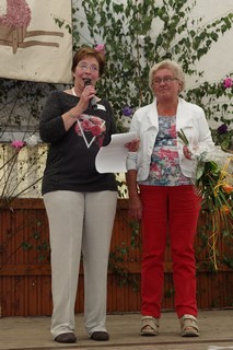 An den verstorbenen Jubiläums-Heidekönig (vor 50 Jahren) Hubert Koitka erinnerte die Vorsitzende und überreichte Ehefrau Gertrud einen Blumenstrauß.