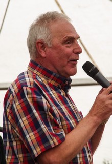 Heidekönigs Willi Kröger fest. Er ersteigerte die Heidekarre nach 177 EUR. Zuvor