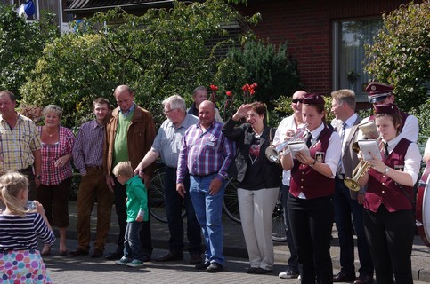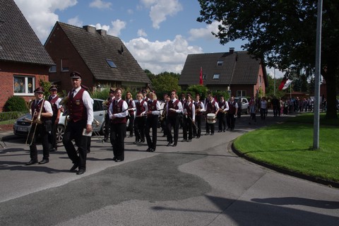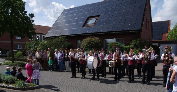 Unter Begleitung des Jugendblasorchester Hochmoor holten die Wittenfelder den noch amtierenden Heidekönig Willi von zuhause ab.