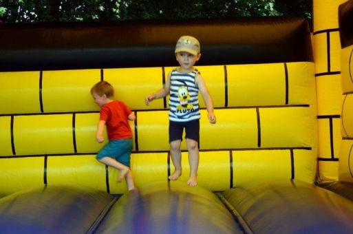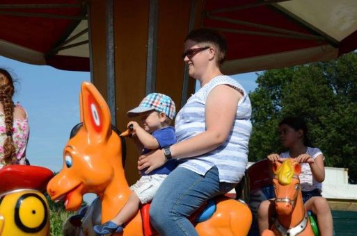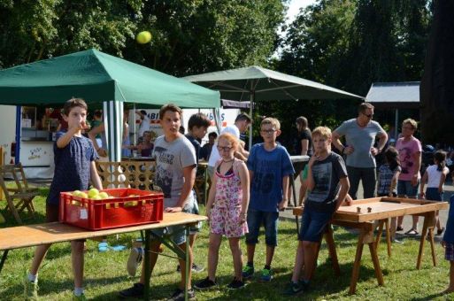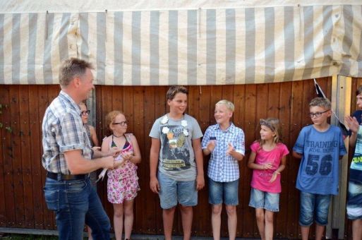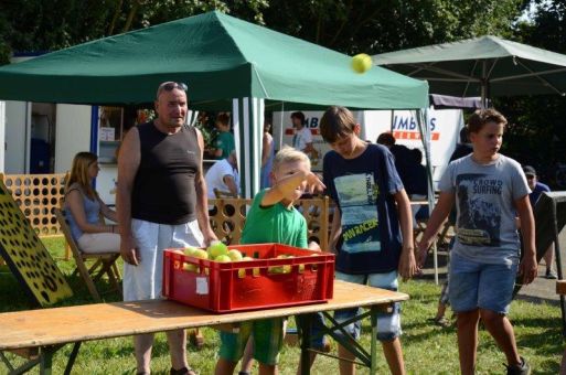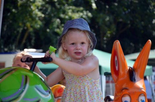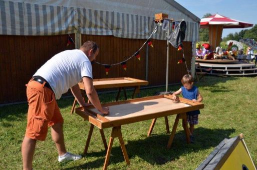 Buntes Treiben rund um das Festzelt auf Hölschers Festwiese beim Kinderfest im Rahmen des Sommerfestes 2016.