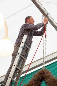 Traditionell wird am Montag der „Busch“ aufgeräumt, oder wie heute gesagt werden muss, das Zelt und der Festplatz aufgeräumt. Um 11:00 h ging es los, zuerst ist fast nur der Vorstand vor Ort. Aber es dauert nicht lange und immer mehr Nachbarn kommen, um beim aufräumen mitzuhelfen, Doppelkopp zu spielen oder einfach nur um zu klönen.