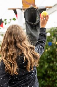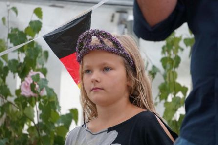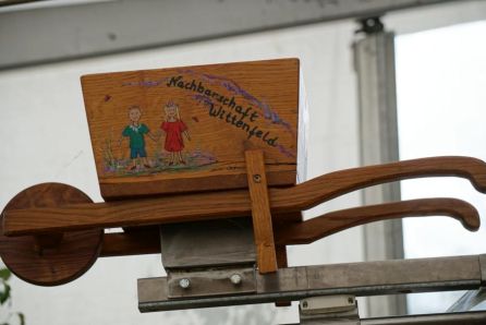 Der Höhepunkt, der Wettkampf um den Königstitel, blieb spannend bis zum Schluss. Ohne Unterbrechung wurden pausenlos die Tennisbälle in den Fangsack geworfen bis endlich die Heidekarre überkippte und Tim Köhne als neuer Heidekinderkönig feststand. Carolin Köning wird seine Königin sein, wie übrigens auch als Kinderkönigspaar beim Schützenverein. Als Ehrengeleit wählte das Königspaar Finja Berks, Milo Renners, Mika Völker und Filou Bertels. Nach so viel Aufregung und Anspannung werden die Kinder schnell hungrig und auch dafür war gesorgt: mit Pommes und Currywurst, frisch von Terweys Grill konnte der Hunger der Kleinen und Grossen Wittenfelder gestillt werden.