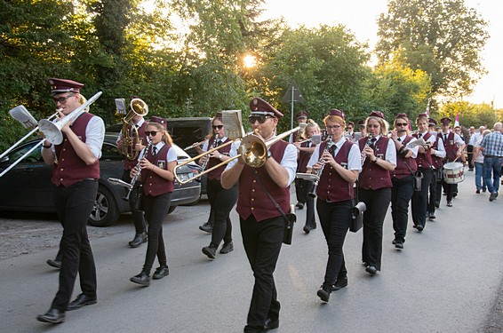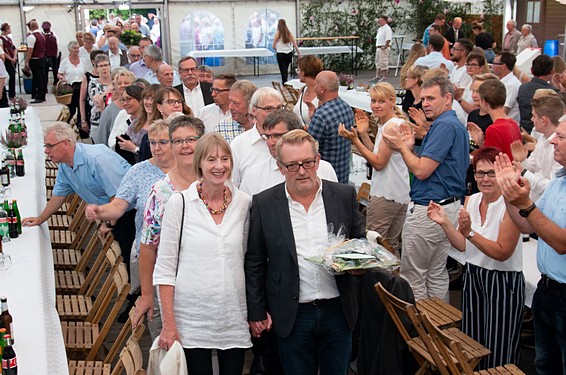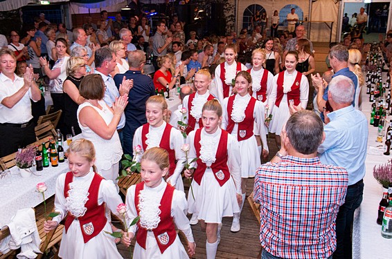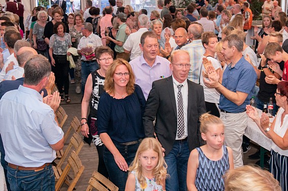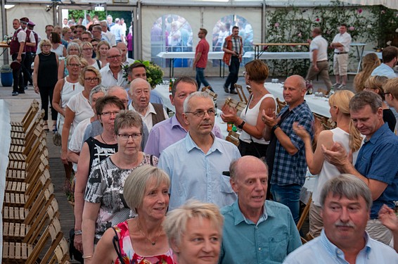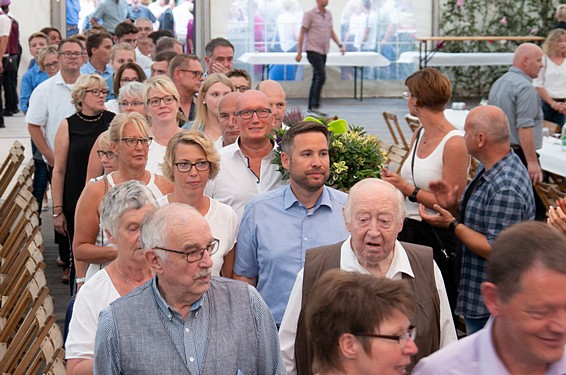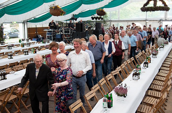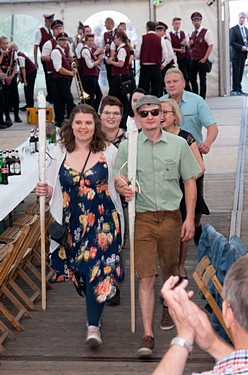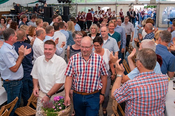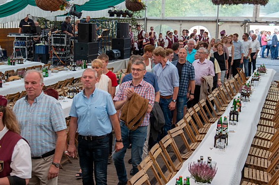 Nach dem Gottesdienst zog der scheidende Thron in das festlich geschmückte Zelt auf Hölschers Festwiese ein.