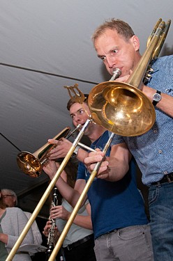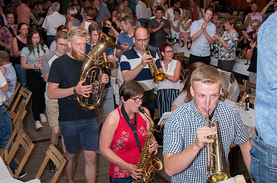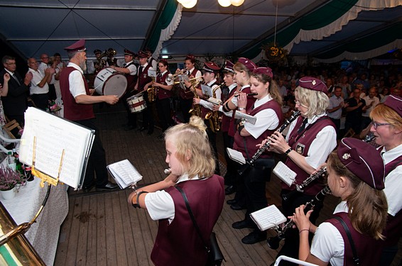 Nachdem die lange Reihe der Gratulanten ins Zelt eingezogen war, begrüßte der 2. Vorsitzende Thomas Wiesweg die Gäste, die Musik und natürlich auch den scheidenden Thron. Das Jugendblasorchester ließ es sich nicht nehmen, ein zünftiges Ständchen zu bringen.