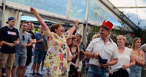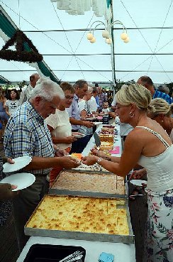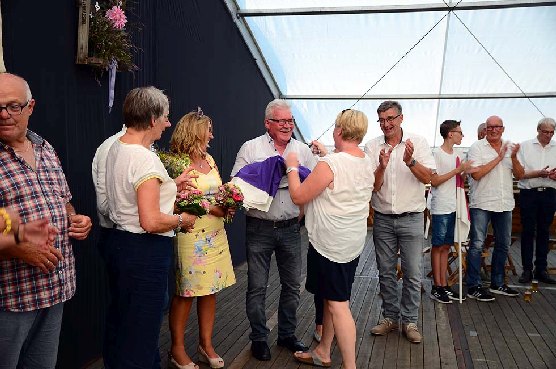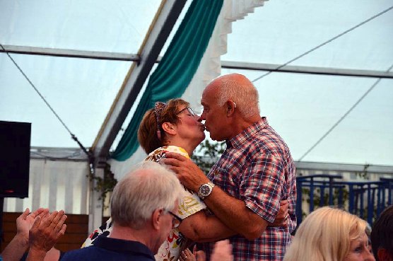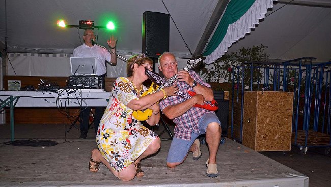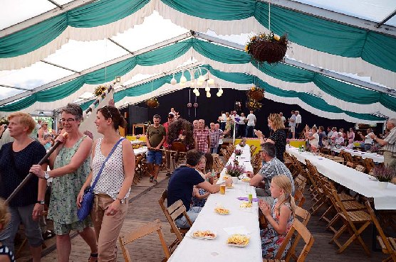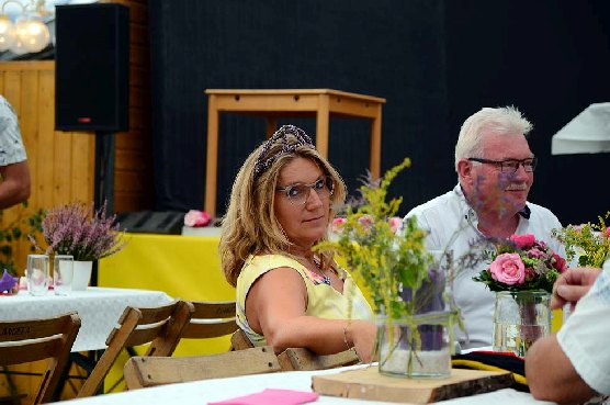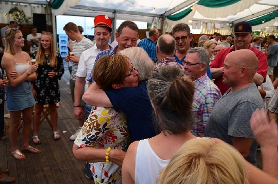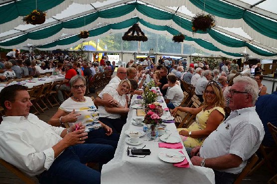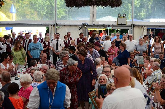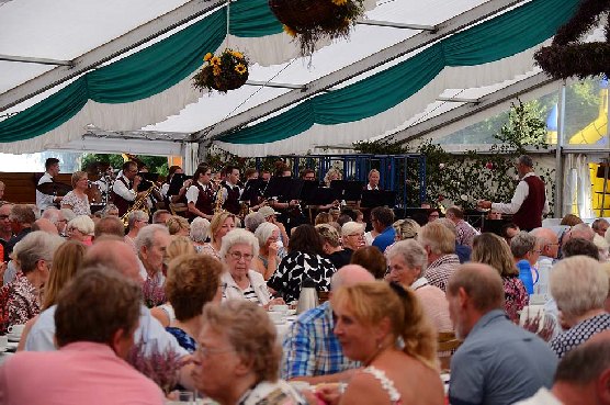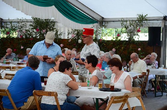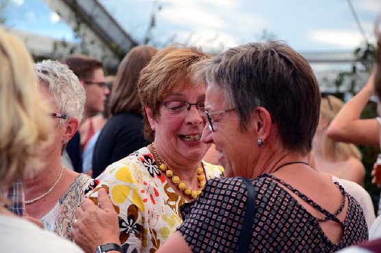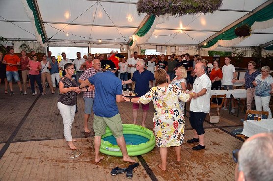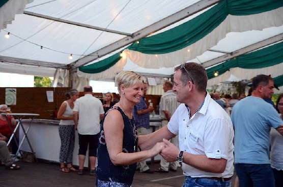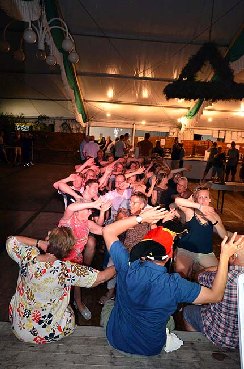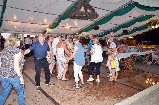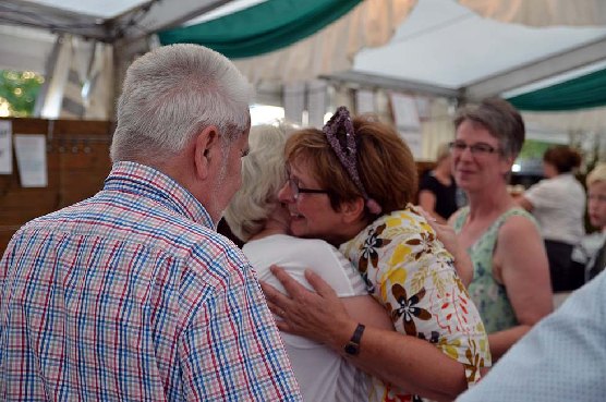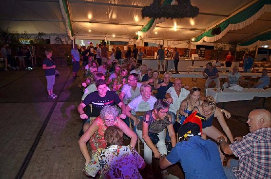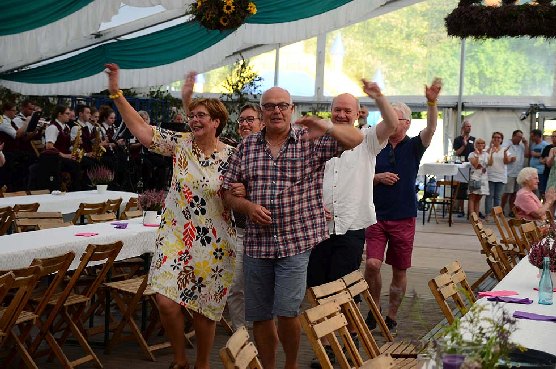 Nachdem der bisherige Thron um Josef Selting die Insignien an Maria Lammering und ihr Gefolgte übergeben hatte, wurde im Festzelt noch lange der Dämmerschoppen gefeiert - den offiziellen Festball mit dem neuen Thron gibt es erst bei Sommerfest im nächsten Jahr.