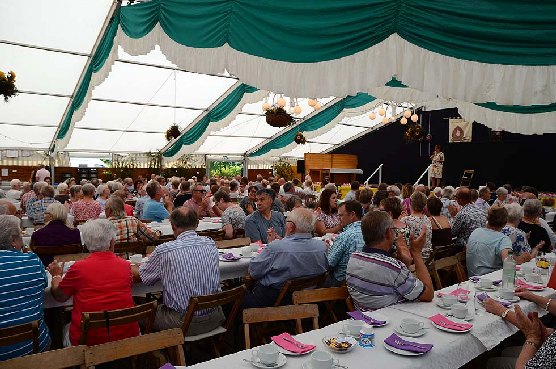 Nach dem Einzug ist das Festzelt auf Hölschers Festwiese folgte die Begrüßung...