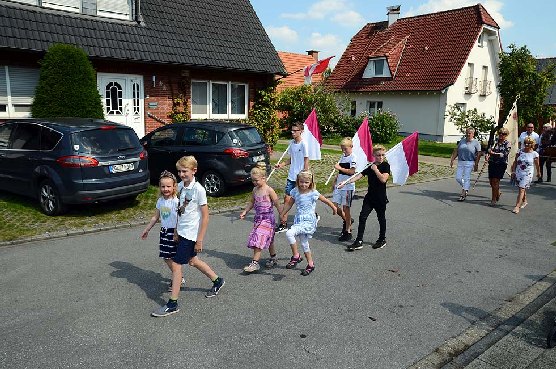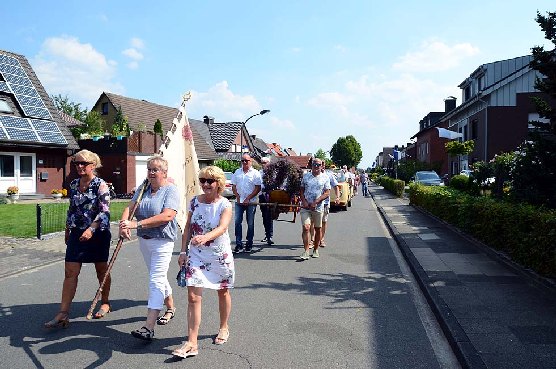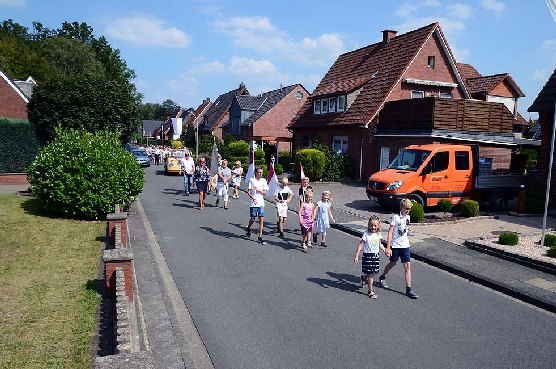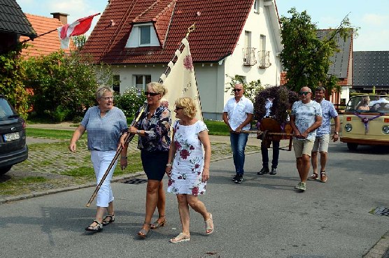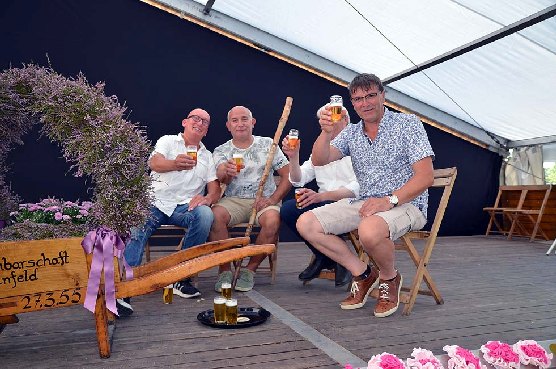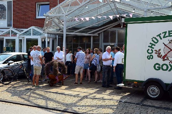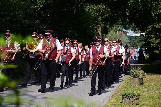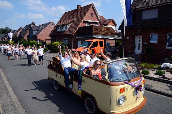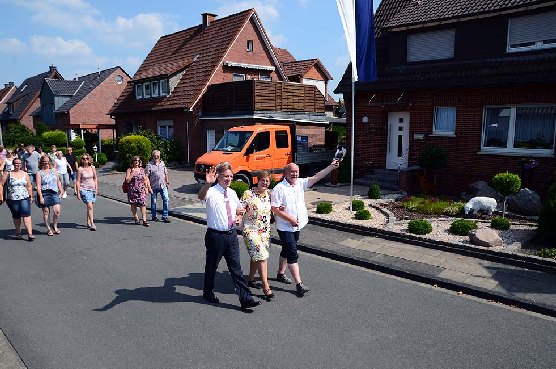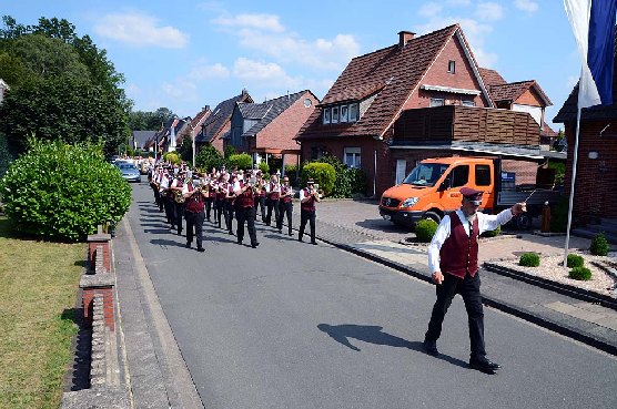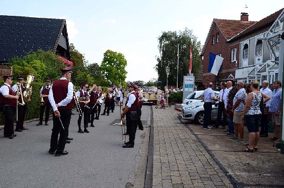 Vor dem Hause Selting versammelten sich viele Wittenfelderinnen und Wittenfelder am Sonntag (25. August), um das Heidekönigspaar Josef Selting und Monika Köhne zum Festzelt zu geleiten. Wie immer sorgte das Jugendblasorchester Hochmoor für die gute Begleitmusik.