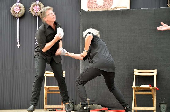 Anschließend wurde von Margret Brockmann der zweite Auftritt der Kfd-Theatergruppe angekündigt. Es war wieder ein herrlicher Auftritt der Goxeler Damen, die sich diesmal mächtig "aufgepllustert" hatten...