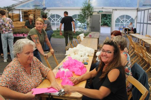 Die Nachbarn der Nachbarschaft Wittenfeld haben am 26. August das Festzelt auf Hölscher Festwiese geschmückt. Bei guter Beteiligung waren verschiedene Aufgaben für die bevorstehenden Festtage zu erlediggen. Im Mittelpunkten standen dabei: : Rosen aus buntem Krepp erstellen und an den Birkenzweigen anbringen, der von dem Heidekranz-Team gebundene Heidkranz platzieren.