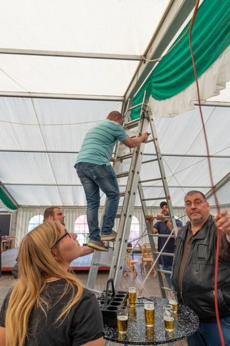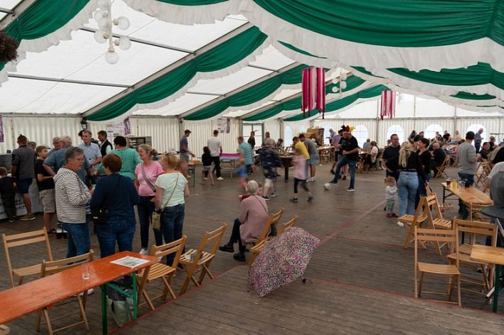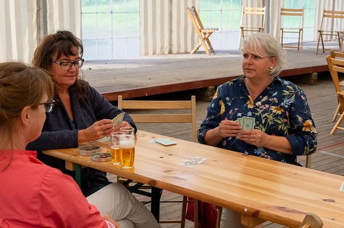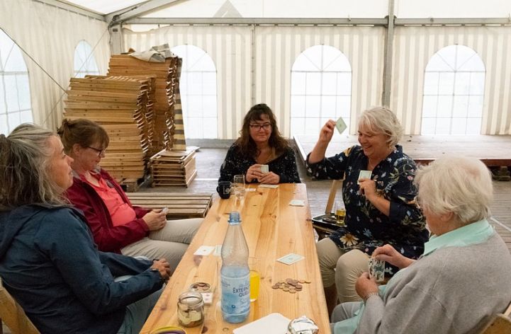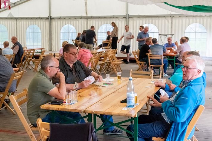 Auch der Königsthron kam nach einer kurzen Nacht zum Festzelt. Neben dem Kartenspiel stand auch ein Kicker und eine Tischtennisplatte im Zelt und wurden rege genutzt.