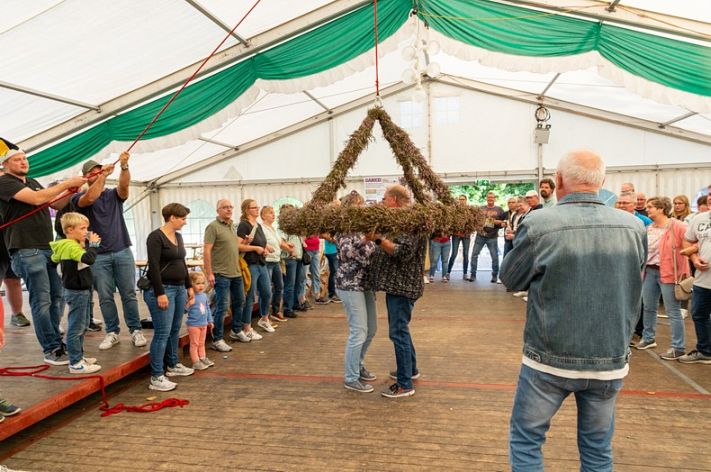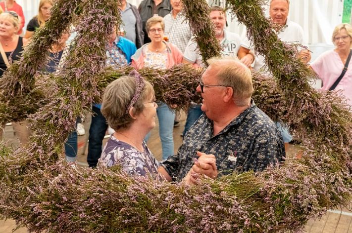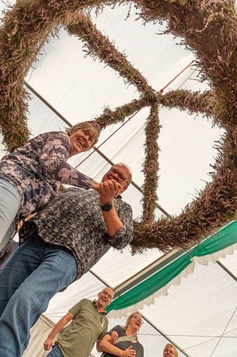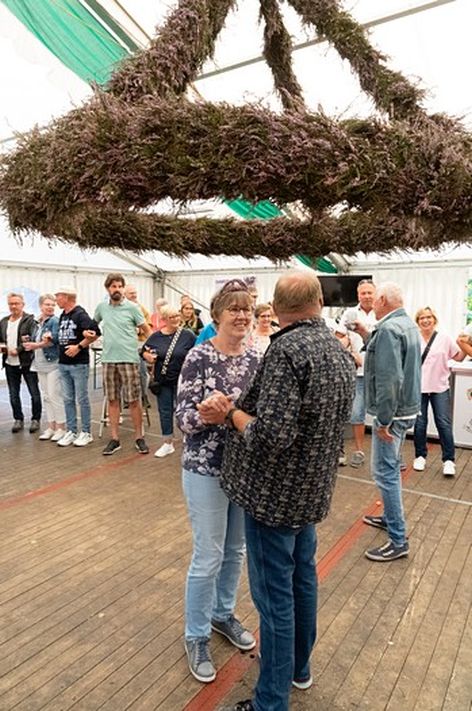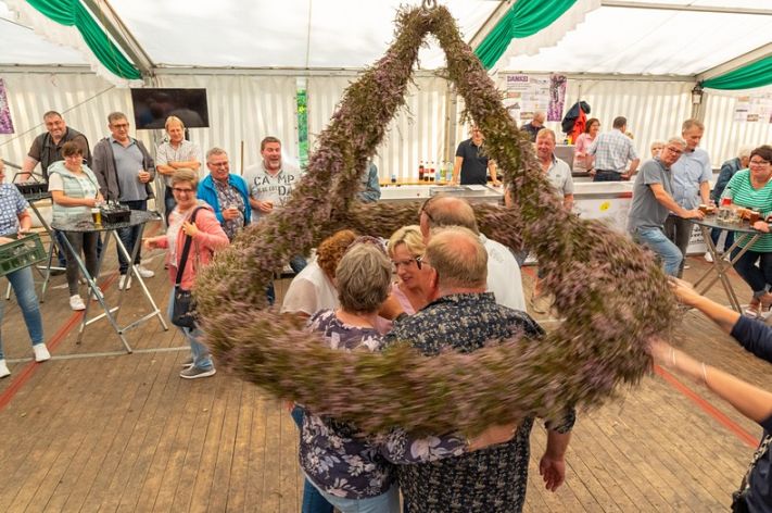 Natürlich musste der Heidekranz wieder abgenommen werden. Bei dem gemeinsam gesungenem Wittenfeldlied tanzte der Heidethron ein letztes Mal unter dem Heidekranz.