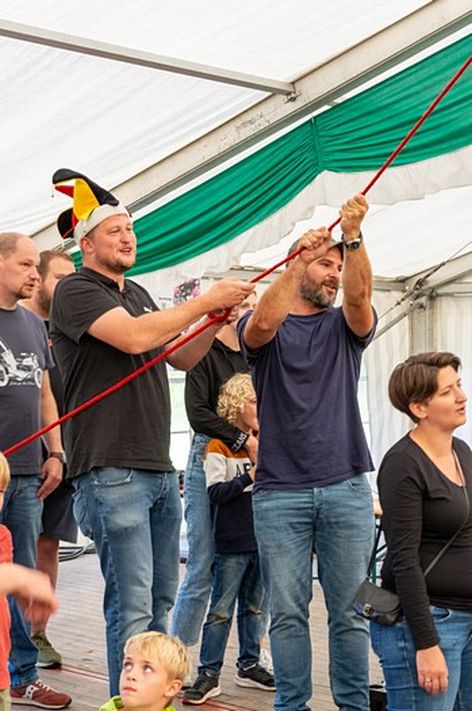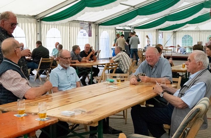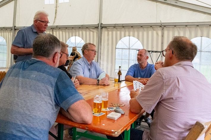 Nach dem Kinderfest trafen sich die Nachbarn zum traditionellen „Busch aufräumen“ - oder vielleicht doch eher zu "Doppelkopp und Gerstensaft.