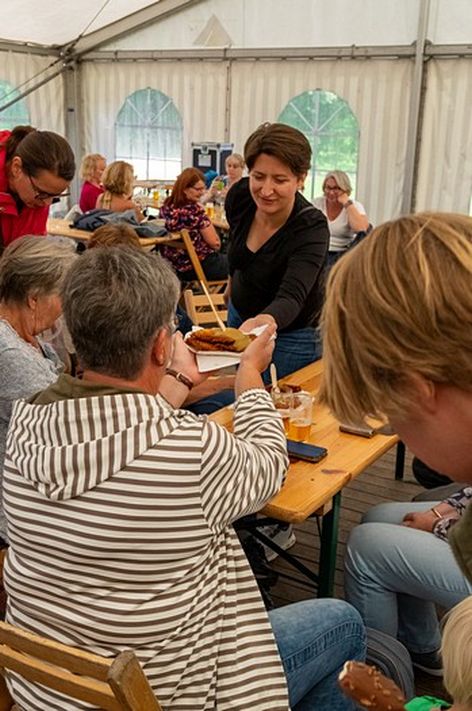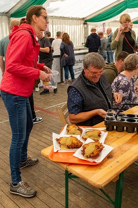Für die Verpflegung sorgten das Team um Rita und Reinhold Beenen mit Pommes, Grillwurst und Schnitzel. Simone Deitinghoff bot frisch gebackene Reibekuchen an.
