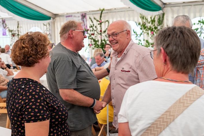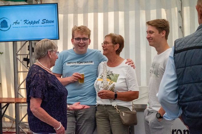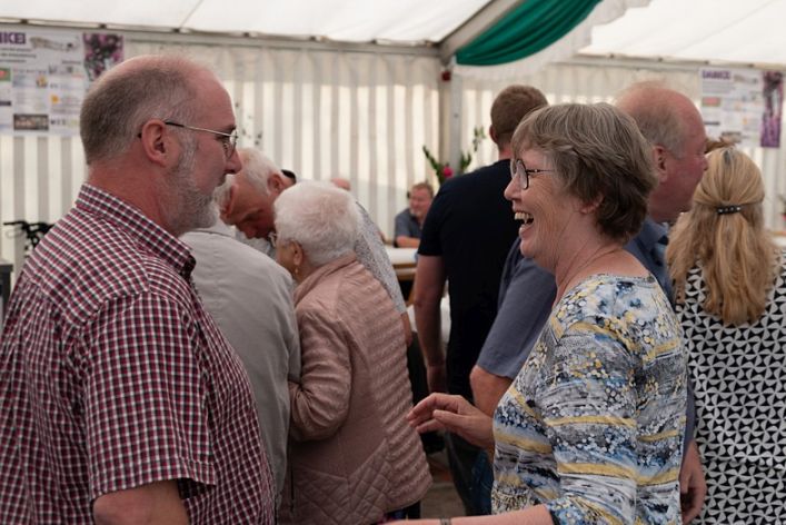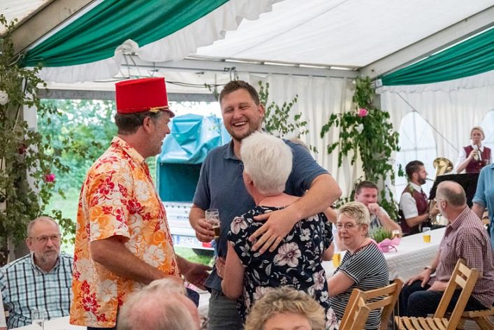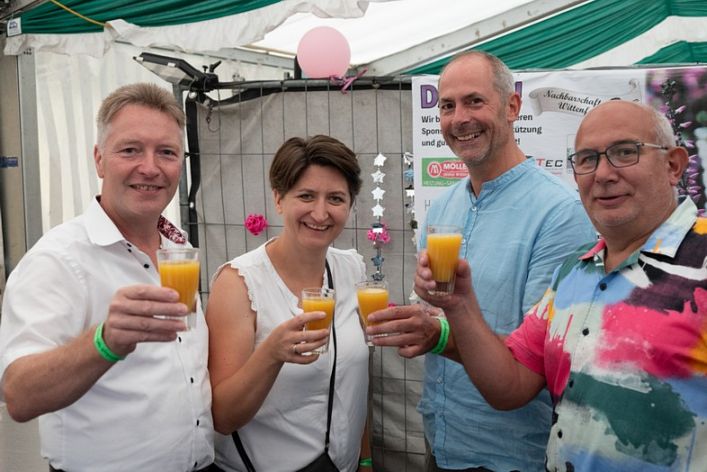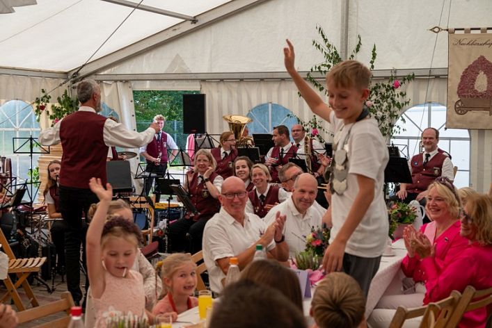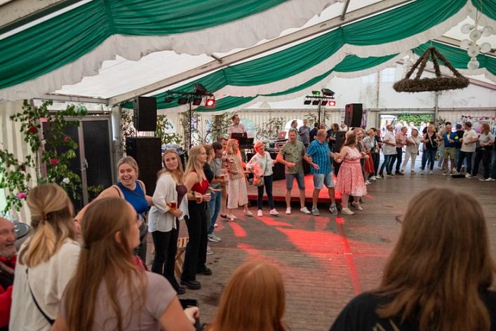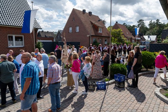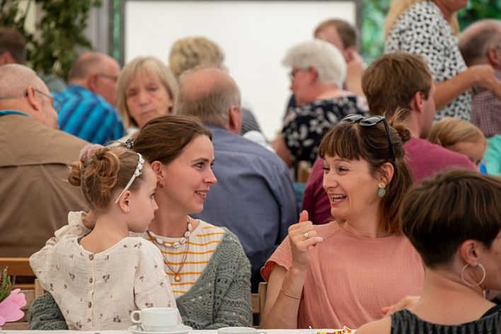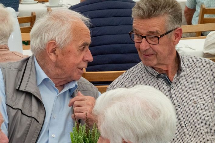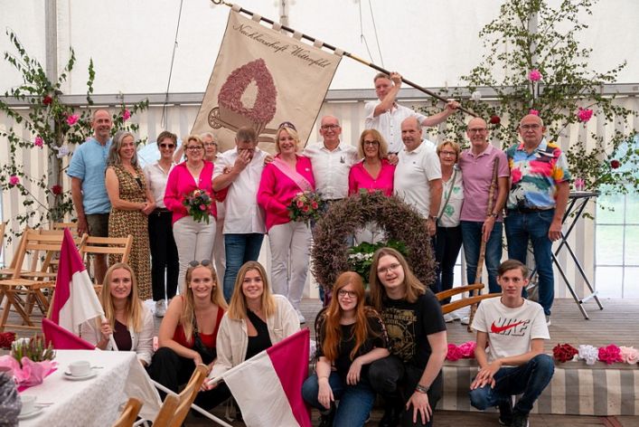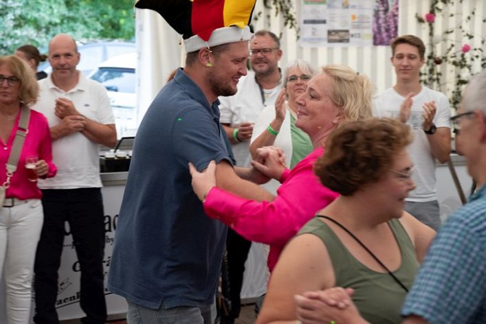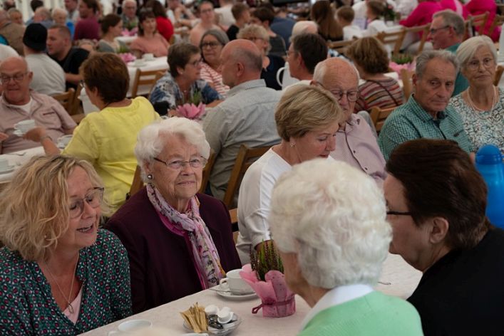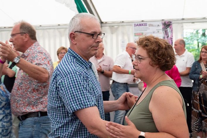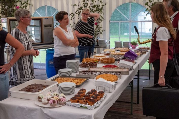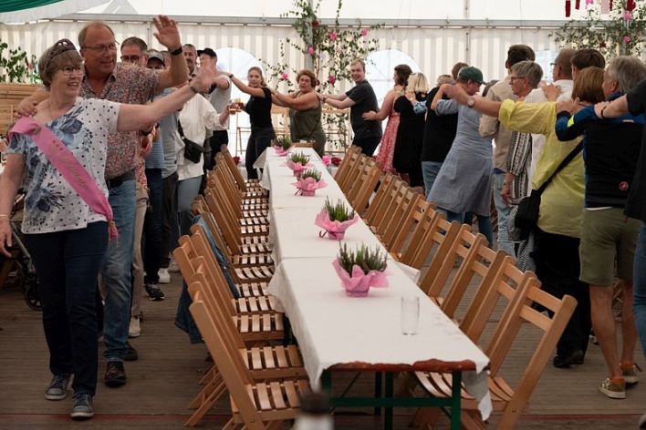Im vollen Festzelt wurden die Nachbarn von den beiden Vorsitzenden der Nachbarschaft, Kerstin Renners und Volker Barenbrügge, herzlich begrüßt. Bei Kaffee und Kuchen war Zeit für einen kleinen Plausch unter Nachbarn.