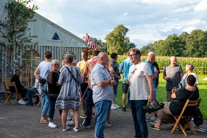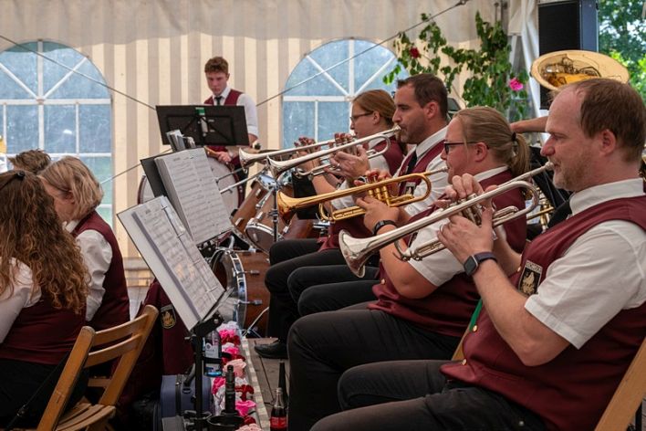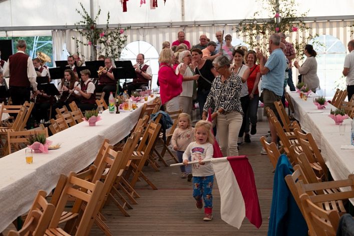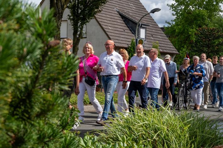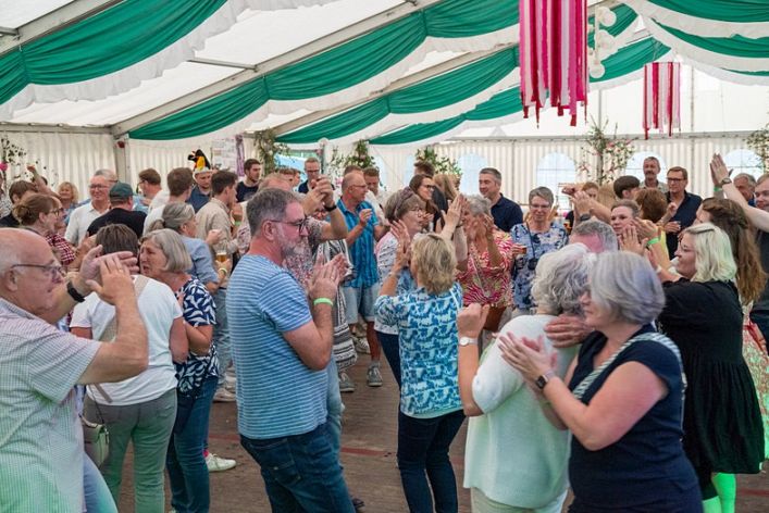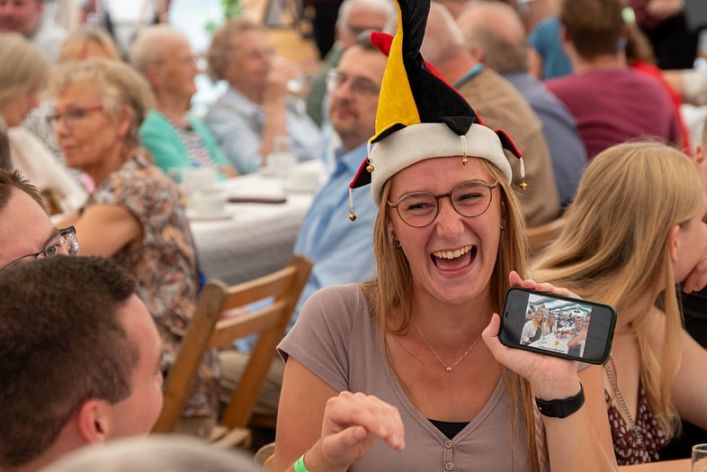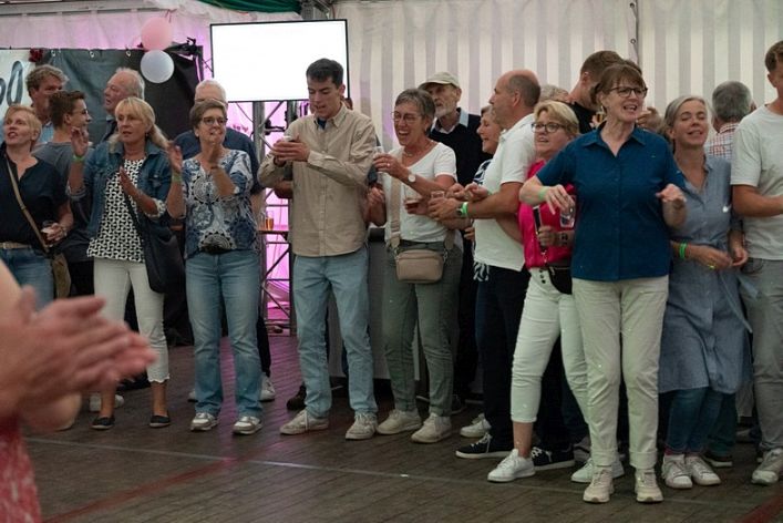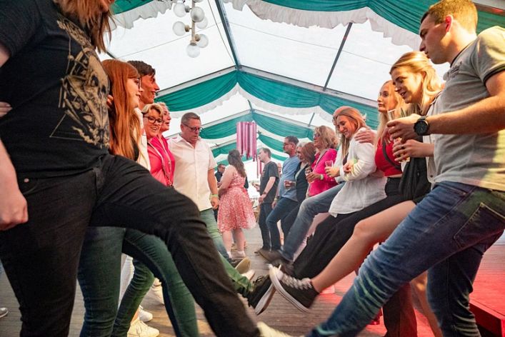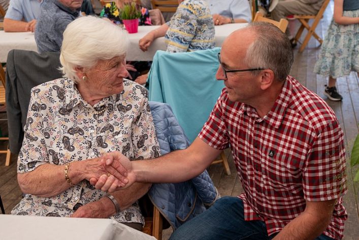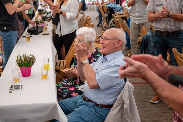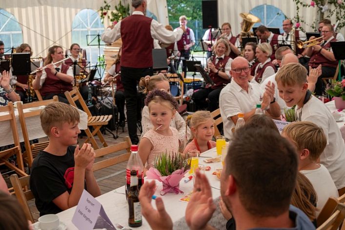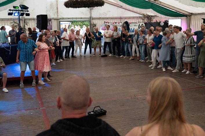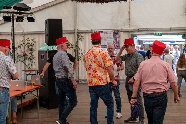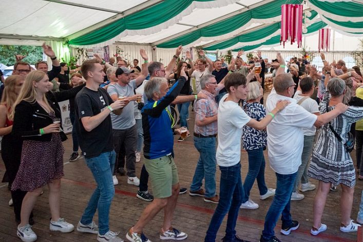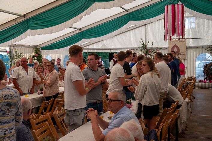 Im vollen Festzelt wurden die Nachbarn von den beiden Vorsitzenden der Nachbarschaft, Kerstin Renners und Volker Barenbrügge, herzlich begrüßt. Bei Kaffee und Kuchen war Zeit für einen kleinen Plausch unter Nachbarn.