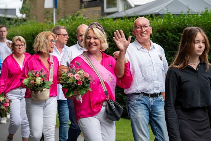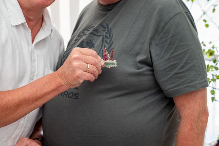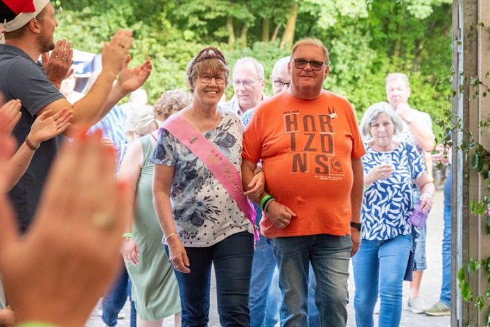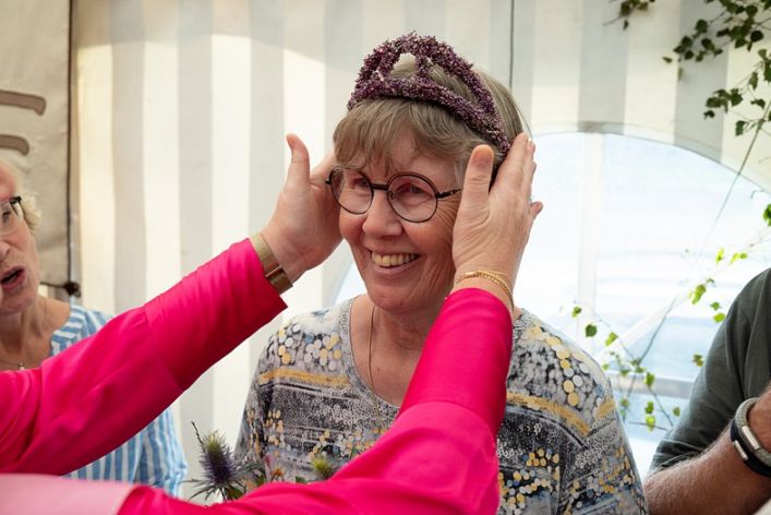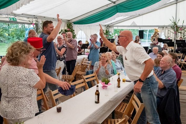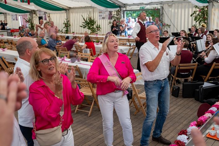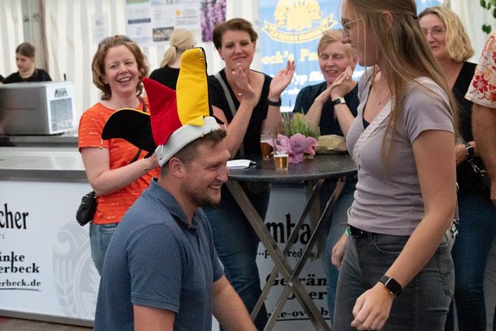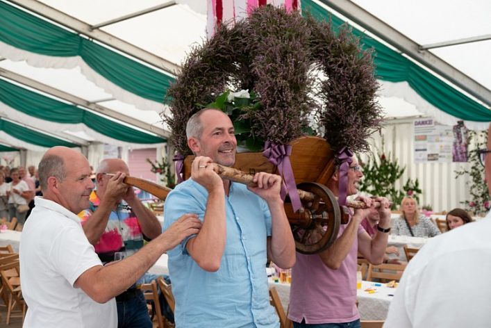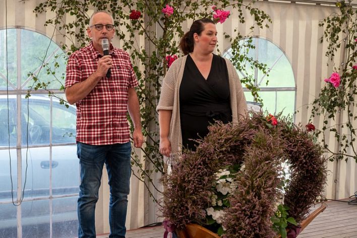 Nach kurzer Pause wurde es dann ernst, es ging um die Nachfolge von Tanja und Herbert. Schnell kristallisierten sich Bewerber heraus, ein Euro fiel nach dem anderen in die roten Hüte. Bei 121,-- Euro hiess es dann „zum ersten, zum zweiten, zum dritten“, eine völlig überraschte Andrea Böck war Heidekönigin 2023. „Das wollte doch gar nicht“ so Andreas erste Reaktion.
