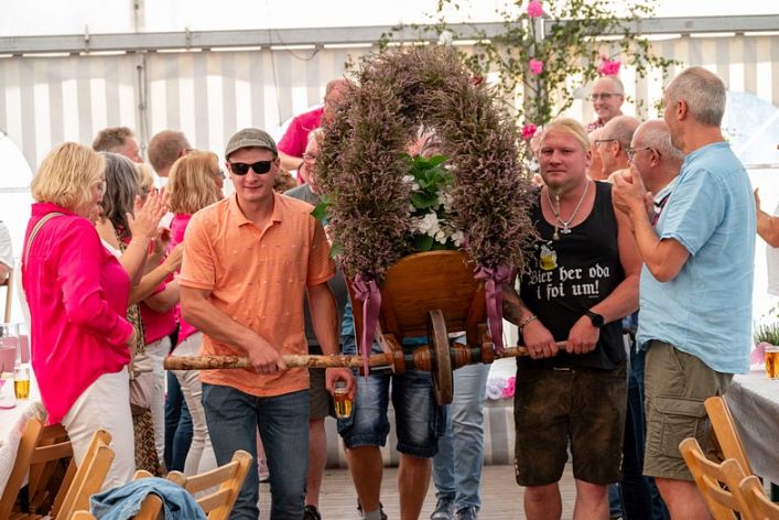 Aber dann war schnell der Thron zusammengestellt: Neben der Heidekönigin Andrea Böck residiert an ihrer Seite Andre Koitka, Ehrenpaare sind Sandra Koitka mit Thomas Böck und Marion und Martin Köning.