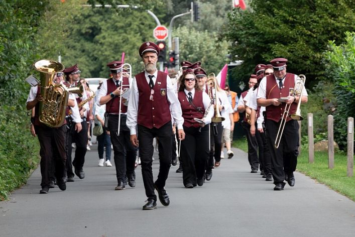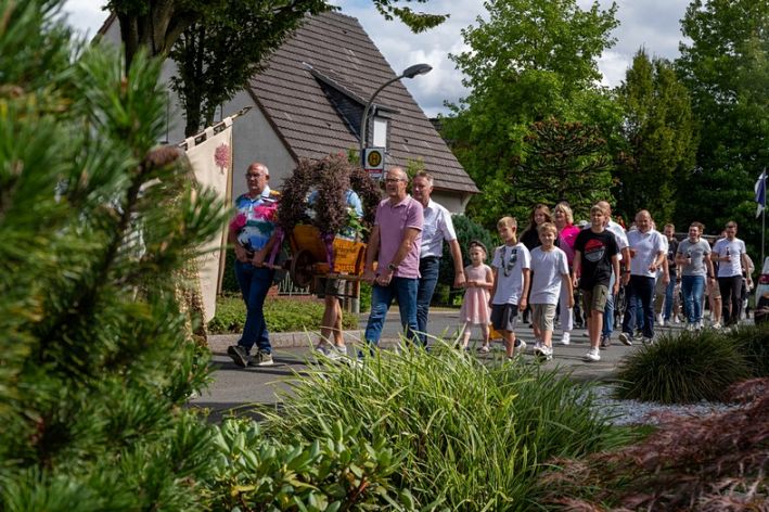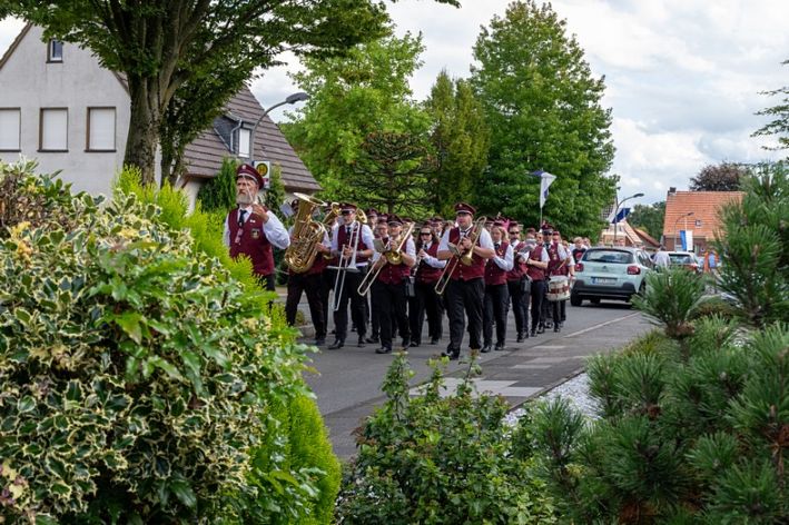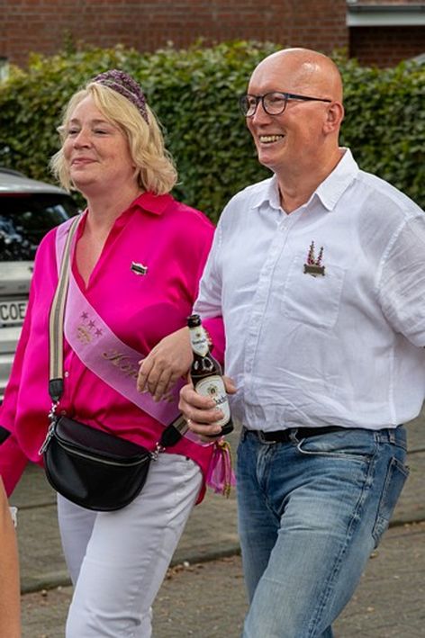 Nach einer kurzen Nacht ging es dann am Samstag weiter. Mit einem Umzug wurde das noch amtierende Königspaar Herbert Gehlmann und Tanja Gerding abgeholt.