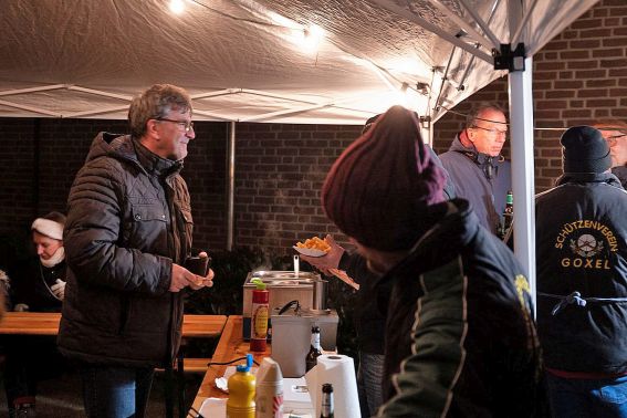 Fast 20 Aussteller waren mit von der Partie. Neben der KfD , dem Schützenverein Goxel , der Messdienerleiterrunde Stoxel und dem Vorstand der Nachbarschaft Wittenfeld, die alle etwas für das leibliche Wohl im Angebot hatten, gab es viele Stände und Hütten mit handwerklich hergestellten Präsenten. Über Kerzen, Socken, Karten, Schmuck und allerlei Dekorationsartikeln erstreckte sich das Angebot des kleinen, aber feinen Basars. Der Nikolaus ließ sich zwischendurch auch sehen und am Ende kamen noch die Trecker der Lichterfahrt am Kirchplatz vorbei. So bekamen die Besucher auf dem kleinen Basar viel geboten. Anerkennend meinte ein Besucher, es sei doch immer wieder erstaunlich, was in Goxel alles bewegt werde. Viele helfende Hände haben dazu beigetragen, dass in den kommenden Tagen ein Teil des Erlöses an drei verschiedene soziale Organisationen überreicht werden kann. Da hoffen die Goxeler - unter ihnen auch der Cheforganisator des Basars Stefan Völker - noch einmal das Strahlen in den Augen der Empfänger zu sehen, welches am Samstag bei den Helfern zu sehen war. Dann würden die Worte von Pastor Hammans, der den Basar mit einer Andacht eröffnete, wahr: es ist nicht wichtig wie groß du bist, es ist wichtig, das du Gutes in die Tat umsetzt.