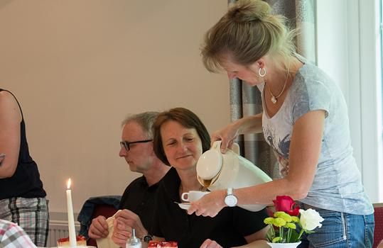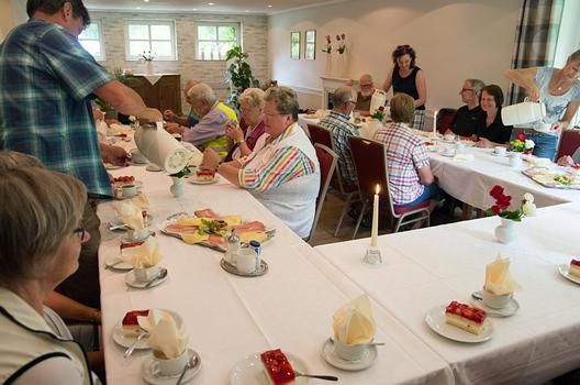 Nach dem eindruckvollen Besuch bei Pfarrer Peter Nienhaus und er Hl.-Kreuz-Kirche fuhr die Goxeler Truppe auf für viele Mitfahrer bisher unbekannten Wegen bis zur Klosterschänke Karthaus. Ein leckeres Stück Kuchen mit Schnittchen und Kaffee sorgte für neue Kräfte, um den Rückweg nach Coesfeld zu bestreiten.