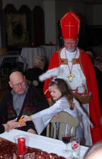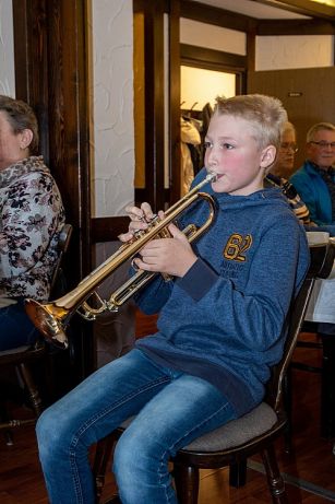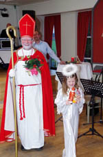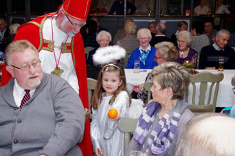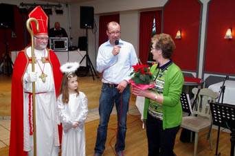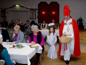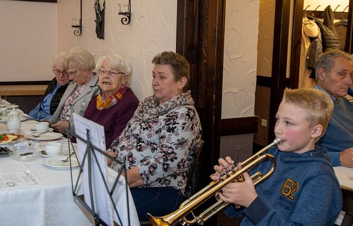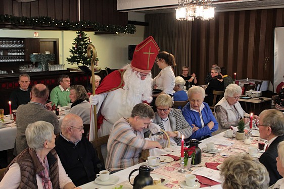 Nach einer Stärkung mit Kuchen und Schnittchen hat Trompeter Jannik mit zwei Ständchen zur musikalischen Unterhaltung beigetragen. Passend zum bevorstehenden Ereignis in der kommenden Woche, hat es sich auch der Nikolaus nicht nehmen lassen, allen einen Besuch zu erstatten. Mitgebracht hat er sein Engelchen Maila, die auch für alle Senioren eine Kleinigkeit dabei hatte.