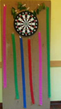 Anschließend konnte jeder Teilnehmer beim Dartspiel (man sagt auf Pfeilwerfen dazu) , Teebeutelweitwurf, Leitergolf, Kronkorkenwerfen