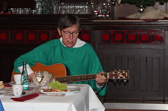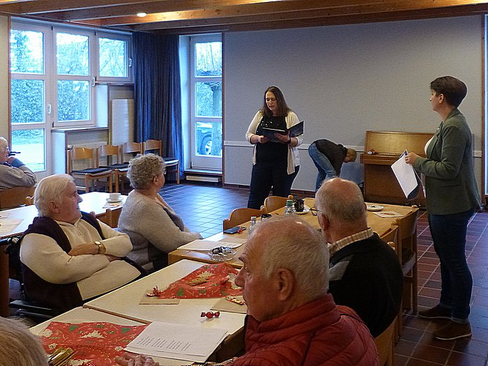 Im Anschluss trug Gisela Langheinrich eine lustige Weihnachtsgeschichte vor. Nach einem weiteren gemeinsamen Singen zu den Gitarrenklängen von Brigitte Gröning und Christiane Schulze Bröring bedankten sich Maria Lammering und Karl Barenbrügge beim Vorbereitungsteam für die Vorbereitung dieser stimmungsvolle Weihnachtsfeier.
