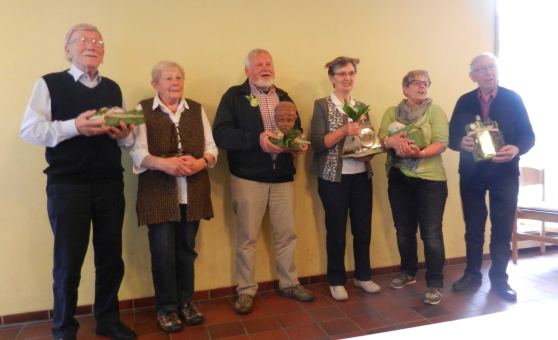 Verantwortlich für die Planung der Touren waren in den letzten Jahren Karl Warmers und Wilfried Hüwe, die jetzt bei einer gemütlichen Kaffeerunde im Bauerncafe Schulze-Scholle diese Aufgabe an ihre Nachfolger Uwe Möllers und Karl-Heinz Wiesmann weitergegeben haben. Karl Warmers hat in rund 15 Jahren 150 Touren nicht nur erarbeitet sondern auch geführt und für geeignete Lokalitäten zu den obligatorischen Kaffeepausen gesorgt. Zu dem Vorbereitungsteam gehörte in den letzten acht Jahren Wilfried Hüwe, der an circa 90 Touren mitgearbeitet hat. Beide wurden nun von über 30 Nachbar-schaftsmitgliedern mit viel Beifall „in den Ruhestand“ geschickt. Sie schlossen in ihren Dank auch die Ehefrauen der beiden ein. Ein weiterer Wechsel wurde vollzogen, denn auch Bernhard Hölscher hat nun die Öffentlichkeitsarbeit für die Radfahrer in jüngere Hände gelegt. Dafür ist künftig Albert Althoff verantwortlich. Allen wurde neben dem Beifall auch eine kleine Aufmerksamkeit als Dank überreicht.