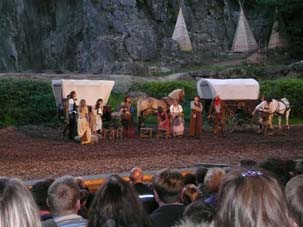 Mit viel Aktion fing dann die Vorstellung der Ölprinz an. Erleben durften wir Winnetou und Old Shatterhand im Kampf gegen das Ungerechte…dem Ölprinz und seiner Bande. Atemberaubende Ritte mit mehr als 40 Pferden, ausgesuchte Spitzendarsteller und -stuntmen, akrobatische Stunts und Kampfszenen, spektakuläre Pyrotechnik begeisterten uns.… ein Live-Erlebnis.