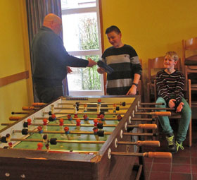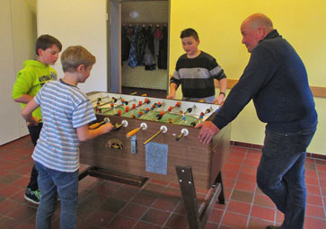 Am Samstag den 22. März 2014 hat im Pfarrzentrum ein Kicker Turnier stattgefunden. Zehn Kinder hatten sich angemeldet und einen lustigen und interessanten Nachmittag verbracht. Den ersten Platz belegte Max Rauß, den zweiten Florian Steinkamp und den dritten Platz machte Finn Anderheyden. Fürs leibliche Wohl wurde selbstverständlich auch gesorgt . (Hot Dogs ,Cola und Fanta.). Selbst Vorstandsmitglieder hatten Spaß…