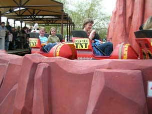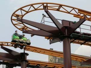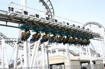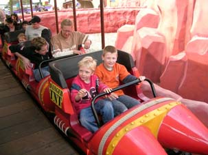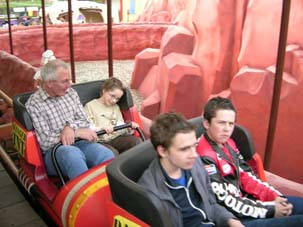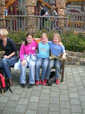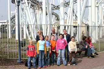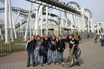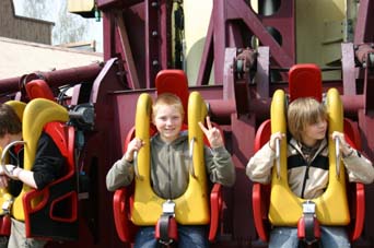 Danach strömten die Kinder und Jugendlichen, aber auch die Erwachsenen, zu den verschiedensten Attraktionen, denn man wollte ja schließlich nichts verpassen. Die Highlights der Attraktionen waren der frei Fall aus 60 Meter Höhe, die Holzachterbahn, der MP Express mit Loopings, Ice Age, die Stunt Show u. v. m.! Zu den einzelnen Attraktionen gibt es natürlich auch Fotos zu sehen. Einige waren schon blass um die Nase geworden, als sie aus der Achterbahn stiegen. Andere hatten dieses noch vor sich.