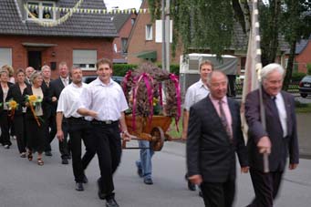 Noch einmal ein tolles Fest feierte das letztjährige Heidekönigspaar Marianne und Jörg mit den Wittenfeldern und vielen Gästen. Abgeholt wurden beide mit großem Gefolge. Es folgte ein Umzug durch das Wohngebiet zum Festzelt.