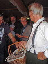 Wie ein roter Faden zog sich Marion aus Suchdrup mit ihren Buffins durch das Programm - bis zum Schluss: Augustin Upmann und Heinz Weißenberg verteilten nach mehreren Zugaben leckere Muffins an alle rund 500 Besucher. Ein gekonnter Abgang nach einem tollen Abend in Goxel.