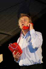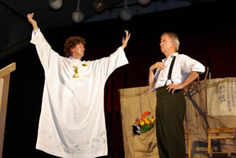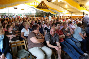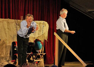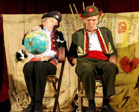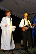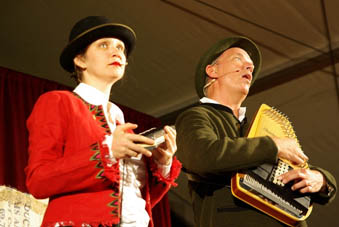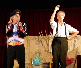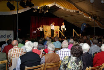 Augustin Upmann und Heinz Weißenberg - die "Bullemänner" sind schon Stammgäste in Goxel. Bereits zum vierten Mal begeisterten sie - gekonnt unterstützt durch Svetlana Svoroba (aus Ochot, der Partnergemeinde von Suchdrup). Und sie fühlten sich spürbar wohl im vollen Festzelt auf Hölschers Festwiese. Der Funke sprang von Anfang an über, als die "Bullemänner" so etliches aus Goxel und Umgebung aufs Korn nahmen. Im Programm drehte sich dann alles um die Intelligenz: "iKuh" als Herausforderung.