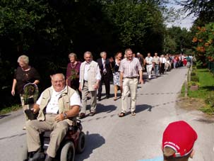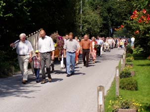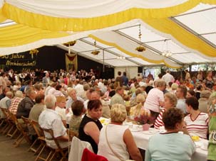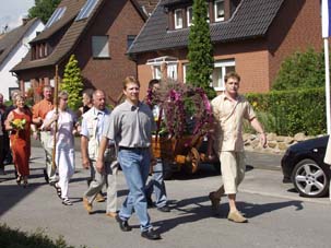 Der Nachmittag begann mit dem Festumzug durch das Wohngebiet. Alle bisherigen Wittenfelder Heidekönige zogen zum Festzelt, begleitet wieder vom Jugendblasorchester Hochmoor.