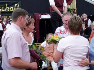 Und dann war es soweit: Nach dem 50. EURO stand Hedwig Kröger als Heidekönigin, nein Heidekaiserin, fest. Sie war schon einmal Heidekönigin, daher ist sie jetzt Kaiserin. Erster Gratulant war Ehemann Willi.