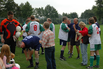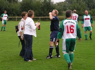 Am Nachmittag gab es dann ein Wiedersehen mit der Gründungsmannschaft der Goxeler Fußballer auf dem Heidesportplatz. Immerhin sind seitdem 30 Jahre vergangen, den Spielern sah man es kaum an - bis auf das eine oder andere Pfündchen. Viel Pflege der Gründungsmannschaft, die gegen eine aktuelle Alt-Herren-Mannschaft spielte, war durch die Betreuerinnen erforderlich!