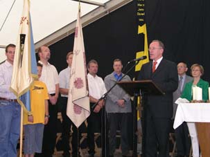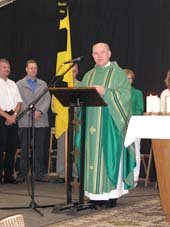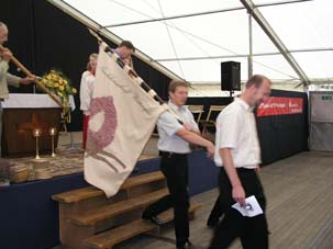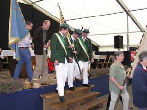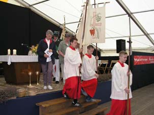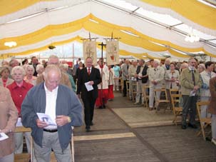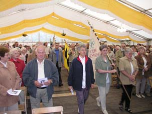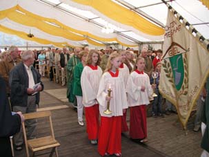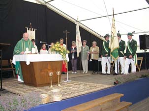 Zu dem Nachbarschaftsjubiläum kommt in diesem Jahr noch ein weiteres Jubiläum: Zum 25. Mal wurde anlässlich des Sommerfestes eine plattdeutsche Messe im Festzelt gefeiert. Wieder waren zahlreiche Gläubige in das Zelt gekommen, um in Begleitung von Fahnenabordnungen aller Goxeler Vereine den Gottesdienst in Plattdeutsch zu feiern. Pfarrer Josef Tenhumberg zelebrierte den Gottesdienst.