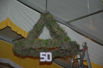 Das Festzelt wurde am Freitag (26. August) festlich für die Jubiläumsfeierlichkeiten geschmückt. Im Vordergrund stand natürlich dabei wieder der Heidekranz.