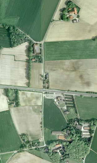 die Goxeler Schule. Unterhalb der B 525 der HEIDEKRUG und die Gehöfte Wilmer