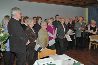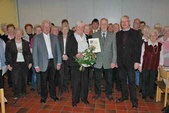 Am 26. November 2011 feierte der Kirchenchor Herz-Jesu Goxel der Anna-Katharina Gemeinde sein diesjähriges Cäcilienfest. Mit ihren musikalischen Beiträgen gestaltete der Chor die Abendmesse mit. Im Anschluss daran traf sich der Kirchenchor zum gemütlichen Beisammensein im Pfarrheim, an dem auch Herr Lenfers als Vertreter des gesamten Seelsorgeteams teilnahm. Die Altistin Carla Freund wurde in diesem Jahr für ihre 25-jährige Mitgliedschaft im Chor geehrt. Die Ehrung übernahmen Herr Lenfers, der 1. Vorsitzende Karl Barenbrügge und der Chorleiter Klaus Budde.