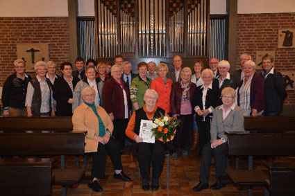 Am 29. November 2013 feierte der Kirchenchor Herz-Jesu Goxel sein sein diesjähriges Cäcilienfest. Musikalisch trug der Chor, unter der Leitung von Klaus Budde, zur Gestaltung der Abendmesse bei. Danach trafen sich die Chormitglieder zum gemütlichen Beisammensein im Pfarrzentrum. Nachdem Pastor Johannes Hamanns Else Schulte für ihre 25-jährige Mitgliedschaft im Chor geehrt hat, wurde gemeinsam lecker gegessen. Ein besonderes Dessert mit musikalischer Untermalung wie man es vom Traumschiff kennt, war eine besondere und gelungene Überraschung für alle. Danach ließ man den Abend gemütlich ausklingen, wie auf den Fotos zu sehen ist.