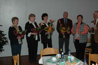 Am Samstag, 25. November 2006 feierte der Kirchenchor Herz-Jesu Goxel sein Cäcilienfest. Die Chormitglieder begannen das Fest mit der musikalischen Gestaltung der Abendmesse. Auch in diesem Jahr wurden wieder einige Chormitglieder für ihre 25-jährige Chormitgliedschaft geehrt. Als Präsent übergaben Dechant Johannes Hammans als Vertreter der Kirche, die 2. Vorsitzende Gertrud Koitka und der Chorleiter Klaus Budde eine Urkunde mit Anstecknadel und einen Blumenstrauß. Im Anschluss daran saßen die Mitglieder noch in gemütlicher Runde im Pfarrheim zusammen. Anhand der Fotos, die nun folgen, kann man sehen, dass der Festausschuss wieder einmal ein harmonisches und gemütliches Cäcilienfest vorbereitet hat. Vielen Dank dafür!