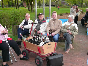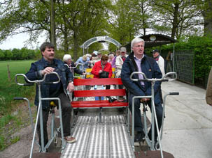 Ziel der 3-tägigen Fahrt vom Kirchenchor Herz – Jesu Goxel war am ersten Mai-Wochenende 2010 die schöne Rhododendrenstadt Bad Zwischenahn. Nach Ankunft in der Jugendherberge und einer Stärkung beim Abendbrot machte der Chor mit einem, mit Proviant gefüllten, Bollerwagen einen Maigang durch den Kurpark, wo auch die Liederbücher zum Einsatz kamen. Anschließend saß man noch in geselliger Runde beisammen. Am Samstag besuchten sie den Park der Gärten, mit Führung durch die einzelnen Themengärten. Abends sorgten die Theaterdamen Gerda Wies, Hanna Wensing und Maria Schulenkorf sowie Dat Botterblömchen, alias Norbert Wies dafür, dass die Lachmuskeln strapaziert wurden. Auch der Gesang kam an diesem Wochenende nicht zu kurz. Der Chor gestaltete am Sonntag die Familienmesse in der St.-Marien-Kirche mit. Danach ging es weiter zum sehr gemütlichen Restaurant Fährkroog, wo man sich für die bevorstehende Draisinenfahrt mit einem leckeren Mittagessen stärken konnte. Um 14 Uhr hieß es dann auf die Schienen, trampeln, fertig los. Die Draisinenfahrt war eine super Gaudi. Am Sonntagabend gegen 20 Uhr ging dann ein programmgefülltes, schönes Wochenende für den Kirchenchor Herz-Jesu Goxel zu Ende.
