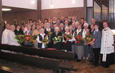 Besonders geehrt wurden vom Vorsitzenden und von Pfarrer Hammans die Mitglieder, die seit der Gründung 1978 mit dabei sind, natürlich auch die erste Chorleiterin Christel Uhlenkotte.
