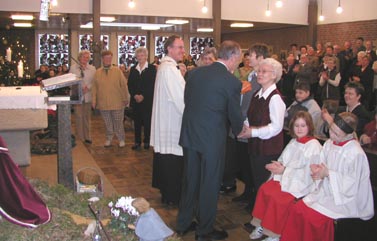 Nach dem Festgottesdienst brachte der Chor auf dem Neujahrsempfang der Gemeinde noch mehrere Ständchen - mehr zum Neujahresempfang hier. Am 7. Juni 2003 wird das Jubiläumsfest stattfinden.