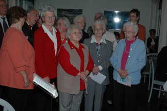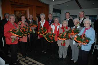 Die Gründungsmitglieder Edeltraud Althoff, Brunhilde Bruns, Margret Hölscher, Josefa Horsthemke, Gertrud Koitka, Paula Thesing, Gerda Wies und Hugo Grevelhörster, es fehlen Ulla Büring und Luise Balke, bekamen für ihre 30-jährige Mitgliedschaft einen Blumenstrauß überreicht.