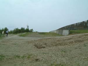 Fahrzeug-Streifen, Erdwall mit Befestigung aus Betonplatten, der Todesstreifen