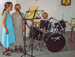 Den Abschluss gestaltete Herr Pink (Klavier) gemeinsam mit Markus Wies (4b, Schlagzeug) mit dem Lied „Oh, when the saints“. Markus beeindruckte das Publikum mit einem Solo.